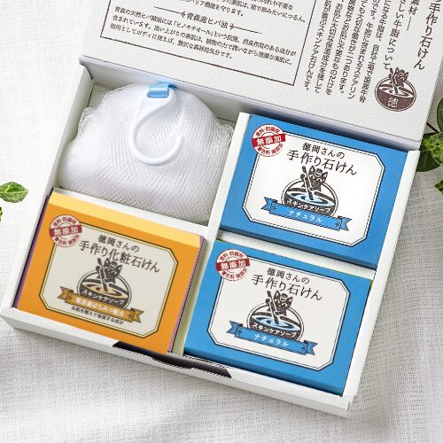 【ギフトBOX】デリケートな肌に|やさしく洗える石けん3個セット(ネット付)